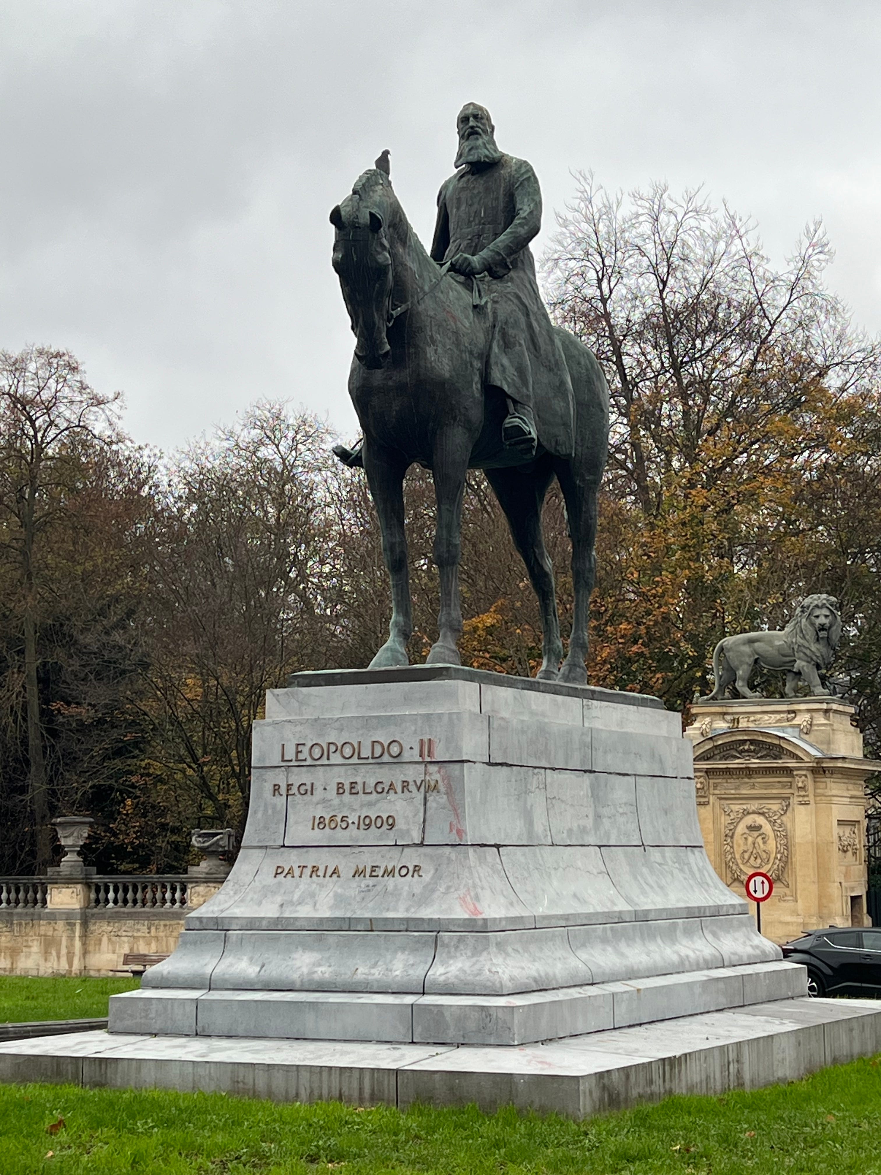 Auf dem Troonplein, eines großen Außenmagistrale östlich des pentagonförmigen Brüsseler Stadtzentrums, direkt unterhalb des Königspalasts, befindet sich ein Reiterstandbild von Leopold II. Der belgische Monarch verübte in den Jahren 1885-1908 das sogenannte „Kongogräuel“: Er errichtete in seiner Privatkolonie im Freistaat Kongo zu Zwecken der maximalen Ertragssteigerung seiner Kautschukplantagen ein blutiges Terrorregime: Historiker schätzen, dass die Einwohnerzahl des Freistaat Kongo durch belgische Verbrechen wie schwerste Misshandlung, Folter und massive Arbeitsausbeutung bis zum Tod halbiert wurde - Schätzungen gehen von etwa 10 Millionen getöteter Kongolesen aus. Wer das tägliche Arbeitssoll nicht erfüllte, dem wurden zur Strafe die Hände abgehackt. Erst als die Gräuelbilder Anfang des 20. Jahrhunderts um die Welt gingen, wurde dem Menschheitsverbrechen ein Ende gesetzt, als der belgische Staat König Leopold den Freistaat Kongo abkaufte und infolge der internationalen Ächtung die Zustände weitestgehend beendete. Im heutigen Brüssel dürfen jedoch Statuen des Massenmörders Leopold II. völlig ungeniert herumstehen – nicht mal eine kleine Gedenktafel weist auf das monströse Verbrechen hin. Von einem Freund in Brüssel erfuhr ich, dass der Statue manchmal von Studenten die Hände abgehackt werden. Am Sockel des Denkmals waren leichte Spuren roter Farbe zu erkennen.