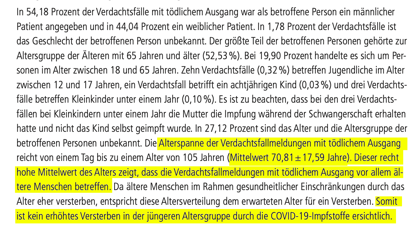 Was bei „Corona-Toten“ konsequent nicht getan wurde - andere Todesursachen, Vorerkrankungen oder Medikamentenkonsum berücksichtigen, um zu evaluieren, ob der Tod wirklich kausal mit der Corona-Erkrankung zusammenhängt – wird bei Verdachtsfällen auf Tod durch Covid-19-Impfung vom Paul-Ehrlich-Institut offenbar besonders konsequent betrieben.